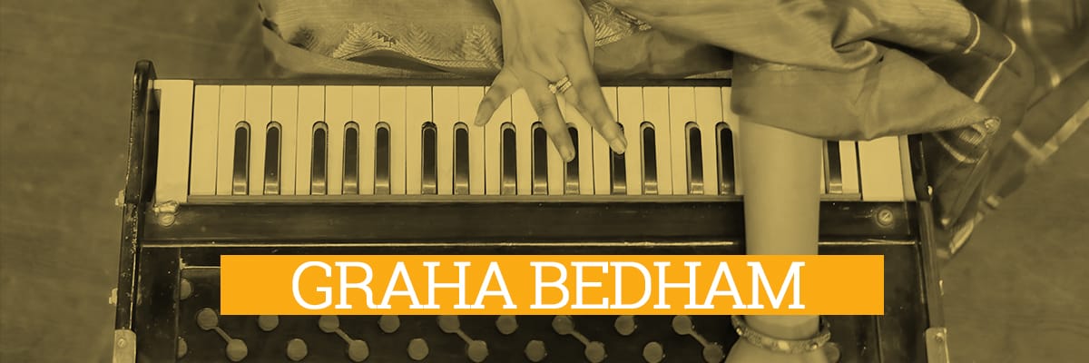 Graha Bedam is the favourite topic of most of the musicians / artist to prove their talent in kacheri’s. Graha Bedham in Carnatic music is the process of shifting the (śhruthi) to another note in the rāgam and arriving at a different rāgam. Bedham refers to seeing the difference. Its equivalent in Hindustani classical music is called a murchhana. Expressed in Western music theory terms, this is the process of arriving at a different scale by shifting to another mode in the key.