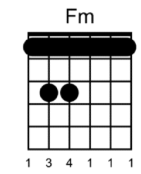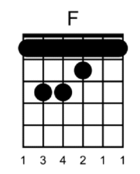 Considering the 12 notes theory, as we get the note F after E, if we shift the E major chord by one fret, we will get the F major, however, we have to barre the first fret (since the nut of the neck of the guitar is not moving while we move the chords).