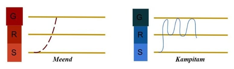 The South Indian style uses a technique called "Kampitam", which shows the oscillation of swaras.
