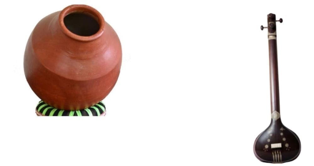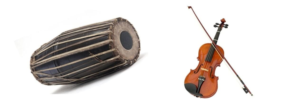 In Carnatic music it is Saraswati Veena, Mrudangam, Violin, Ghatam, Khanjira, Morsing, etc… The very popular instrument Tanpura is common in both the styles.