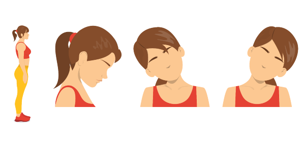 Step 1- From a neutral posture, Start by lowering your head, bringing the chin close to the chest.
