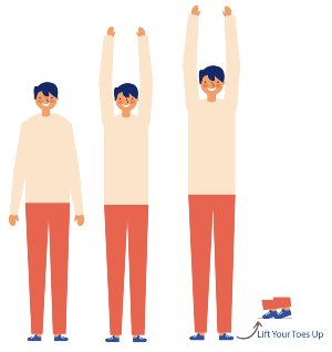 Step 2- Stretch upwards with your arms and feel the stretch from your arms, neck, ribs down to your waist.